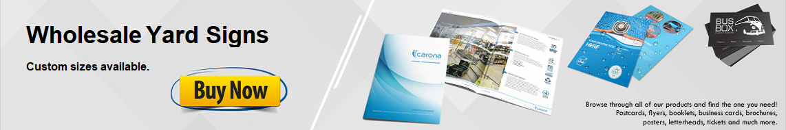 We offer wholesale printing prices for agencies, print and copy shops, publishers, and designers, as well as bundling and packaging options to help make every project even more cost-effective. As your trusted and reliable trade printing partner, we’ll impress you with quality printing and the best prices in town; Our 4mm Coroplast signs are a perfect solution for Yard Signs, these signs are built to help withstand the elements. They are available in 4/0 1-sided or 4/4 2-sided and grommets are also available on this product on either the top side or all 4 corners. We have H Frames that are available for order with this product if required; 6mm Coroplast signs are a perfect solution for Yard Signs, these signs are more rigid and durable than the 4mmcoroplast signs; 8mm Coroplast and 10mm coroplast signs are a perfect solution for Real Estate Signs, these signs are Heavy Duty, thick and very durable. Corrugated Yard signs are great for getting the word out using highly detailed demographic data. You can take advantage of long stop lights and traffic backups by placing your signs at busy intersections. You can also use them for the front of your office or as signs for directions;